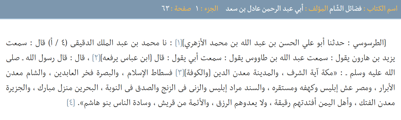 («Фазаилу шам» Адиля ибн Саада, том 1, С. 63).