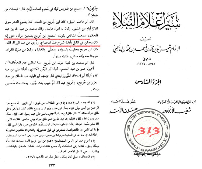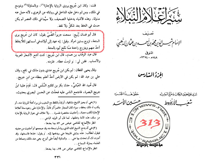 «Ибн Джурейдж считал муту разрешённой. Он был женат временным браком на 60 женщинах. И говорят, что он сказал их имена своим детям, чтобы кто-то из них не ошибся и не женился на одной из тех, на ком был женат их отец временным браком (мутой)».