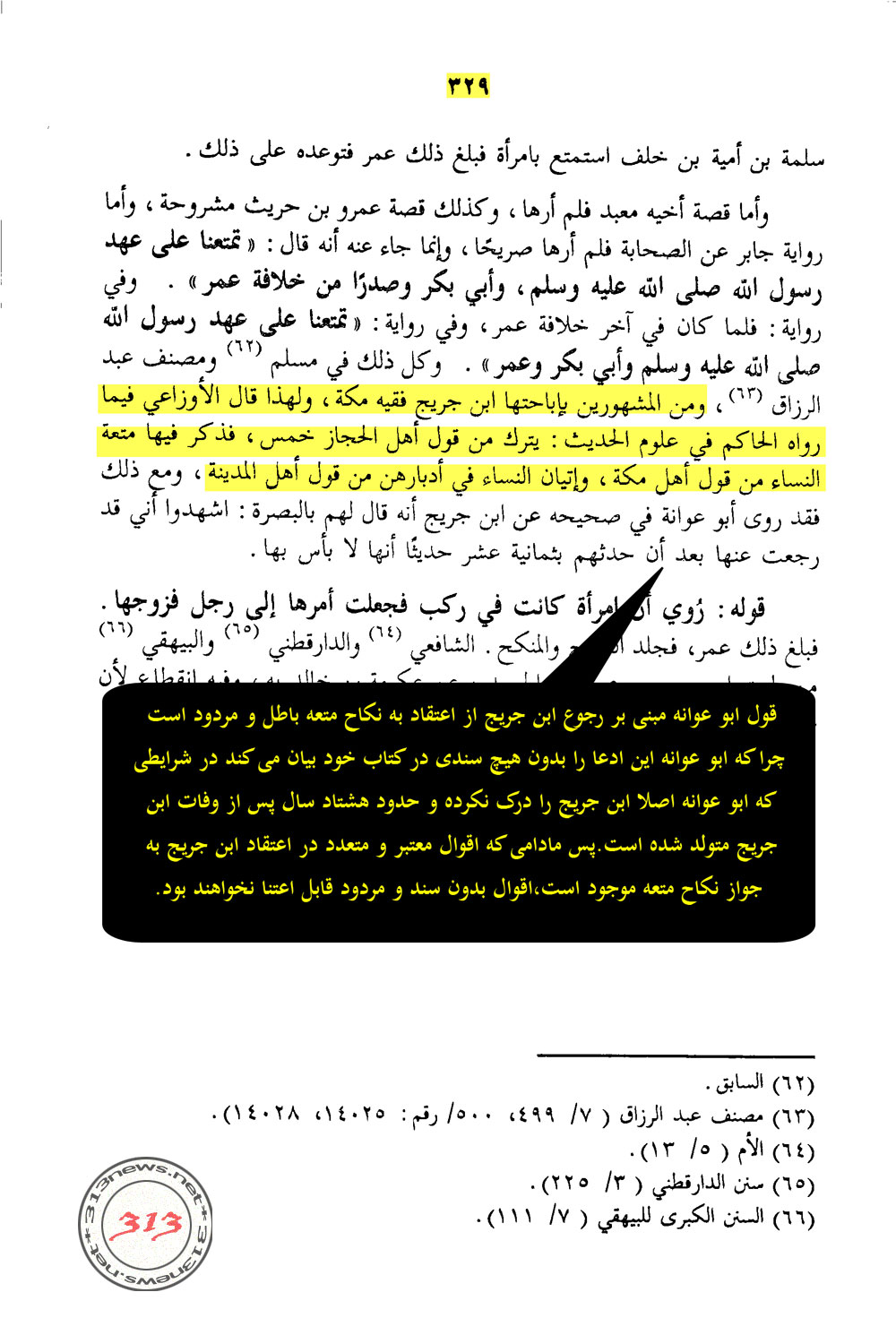 «И из известных учёных, говоривших о дозволенности муты, был Ибн Джурейдж – факих Мекки. А потому Аузаи говорит, как передал Хаким в “Улуму хадис”: “Из слов людей Хиджаза надо отвергнуть пять вещей” – и назвал в их числе муту с женщинами в числе слов людей Мекки, и совокупление с женщинами через задний проход – в числе слов людей Медины».